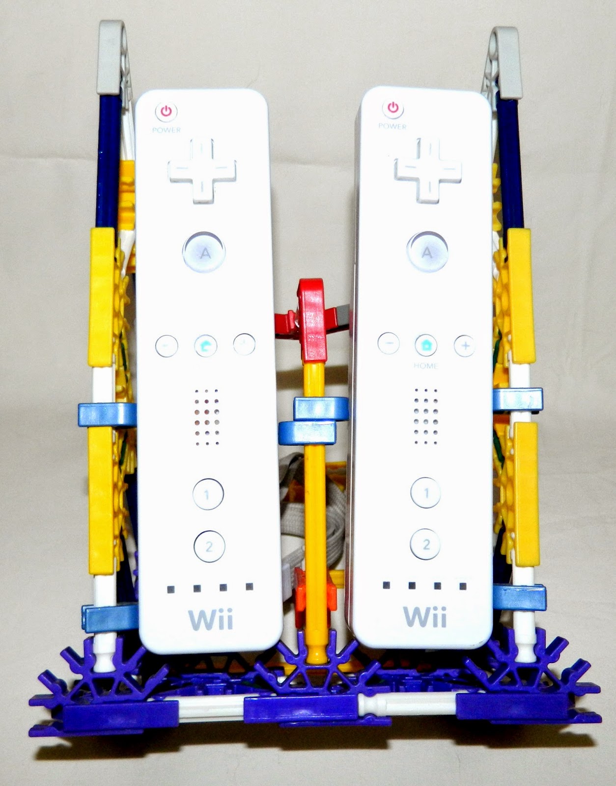 Today's build is another techie build: A Wii Holder. It only holds two wii-motes, but it'd be easy enough to make two of them to accommodate four (and little green connectors could attach the two together). The holder is stylish and big enough that if you wanted to store the nunchucks in the back, you could! Here ya go!